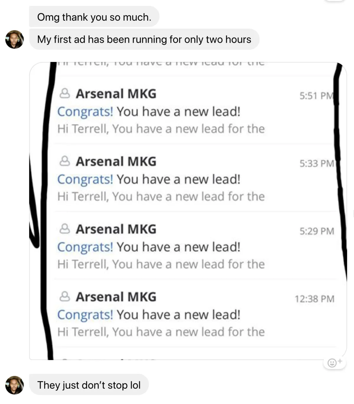 Get Instant Lead Notifications Directly On Your Mobile Phone And Text Every Lead While On The Go! Never Miss Another Sales Opportunity! Every Message From Every Platform Will Flow Into 1 Simple Message Thread! Never Miss Another Facebook Message, Website Chat, Google Chat, Email, SMS, Or Call! Our Mobile App Will Notify You AND Allow You To Respond To Any Message Directly From Your Phone :)